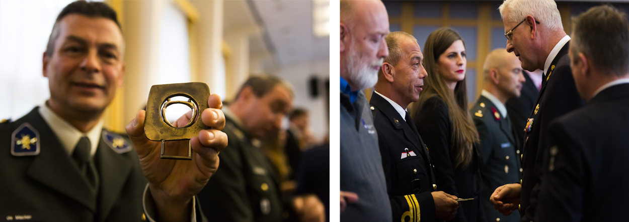 Minister-president Mark Rutte sprak de aanwezigen toe op video, waarna onder anderen directeur viceadmiraal Matthieu Borsboom de penningen uitreikte. “U krijgt vandaag een meer dan terechte waardering voor uw werk en bereidheid om meer te doen dan van u verwacht mocht worden. Er staan als het er toe doet. Dat is de essentie van werken bij Defensie”, aldus Borsboom.