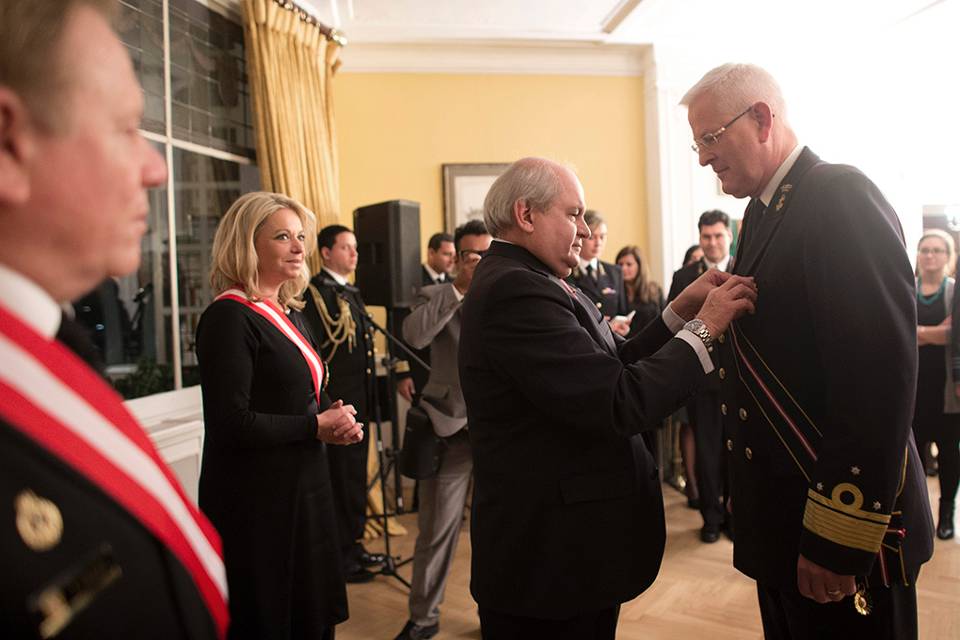 Directeur DMO viceadmiraal Matthieu Borsboom en zijn voorganger Lex Hendrichs hebben een hoge Peruaanse onderscheiding ontvangen. Minister van Defensie Pedro Cateriano Bellido reikte de versierselen uit. Borsboom en Hendrichs zijn onderscheiden met het Grootkruis van Verdienste (Marine).