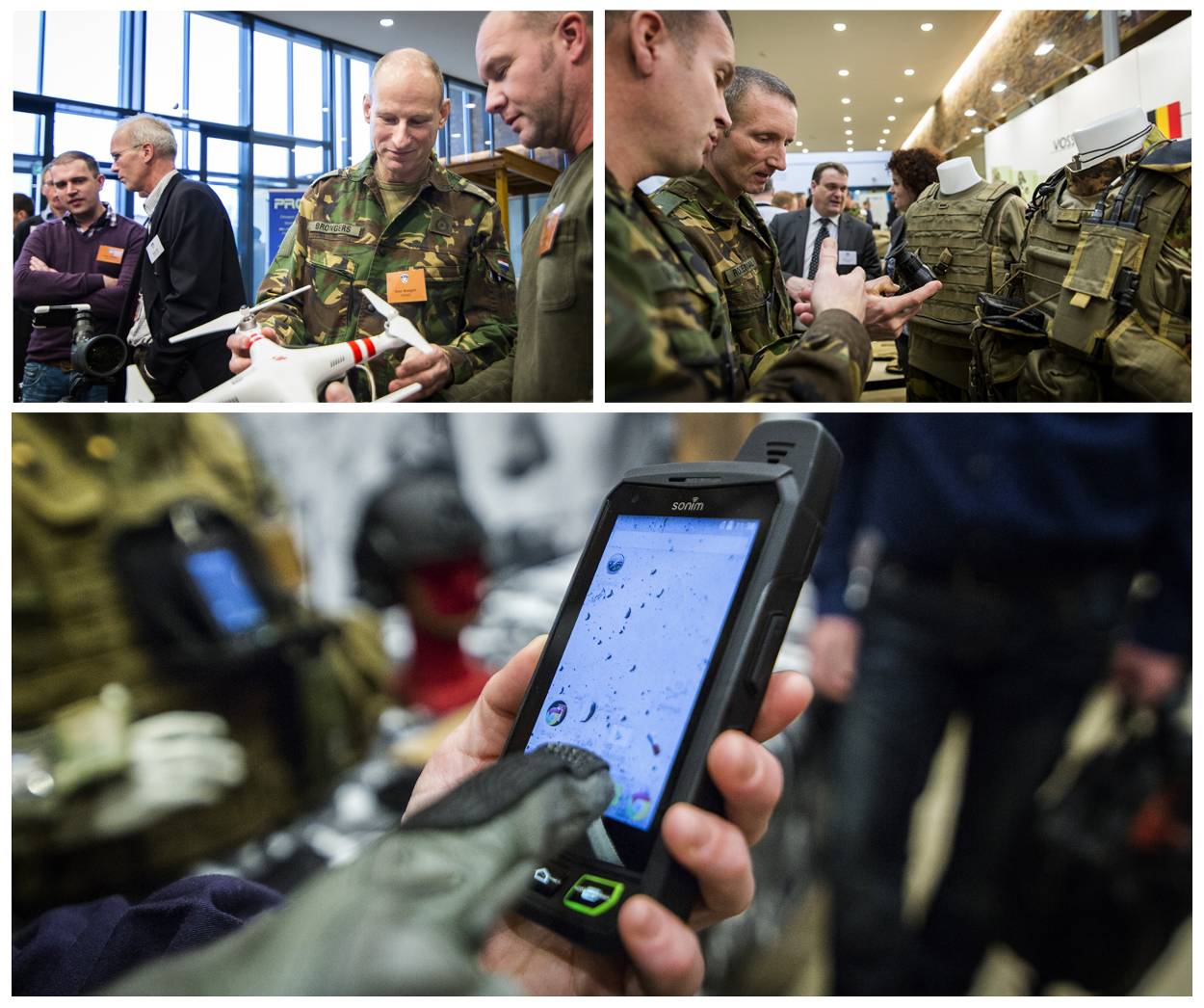 Een verdekt opgestelde soldaat stuurt met een smartphone foto’s van vijandelijk afweergeschut naar de commandopost. Later geeft hij met een tekstbericht de coördinaten door. Geen ruis op de lijn, maar kraakheldere communicatie. De commandant ziet op een scherm waar zijn manschappen zich bevinden en krijgt van zijn ‘sensoren’ in het veld essentiële data voor een prachtig overzicht.