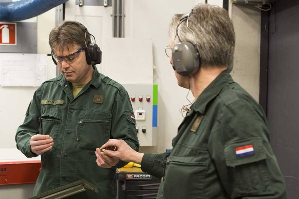 “Om hier te werken moet je een beetje wapengek zijn”, vertelt assistent-beproevingsleider Martin van Boven. “Het is specialistisch werk. Interesse in het vakgebied is vanzelfsprekend een voorwaarde. Als een wapen door een onbekende reden uit elkaar klapt, gaan wij op zoek naar de oorzaak. Dan zoek je dat tot op de bodem uit. Het gaat er om dat de militairen in het veld 100 procent op hun wapens kunnen vertrouwen.”