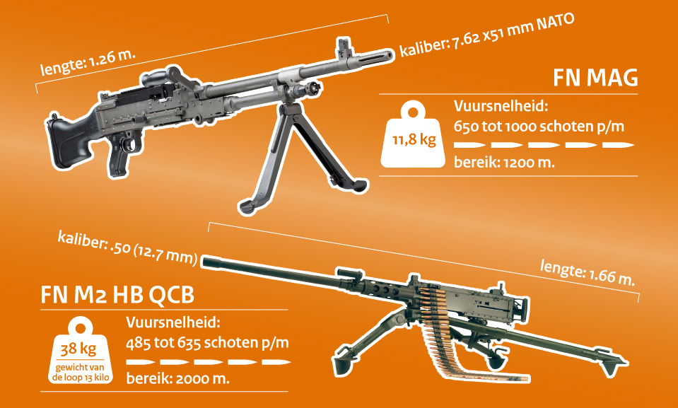 Het gaat om 2050 stuks in kaliber 7.62 mm en 840 van het type M2 in het zwaardere kaliber 12,7 mm (.50). Volgens de projectmanager namens DMO, Jamo Ursum, vertonen de mitrailleurs qua uiterlijk en prestaties veel gelijkenis met de oude modellen. “Op een aantal punten zijn de nieuwkomers verbeterd”, zegt hij. “Zo is bij de MAG 7.62 een ander model kolf geplaatst en zijn beide voorbereid op de montage van dag- en nachtzicht-apparatuur. Die wordt gelijktijdig met de wapens aangekocht. Extra toevoegingen voor de MAG zijn een snelrichtmiddel en een vergroter. Daarmee kan de schutter nog nauwkeuriger doelen bestrijden. De plaats van de nachtzichtkijker op dit type wordt nog verbeterd. Deze aanpassing zorgt voor een betere schiethouding.”
