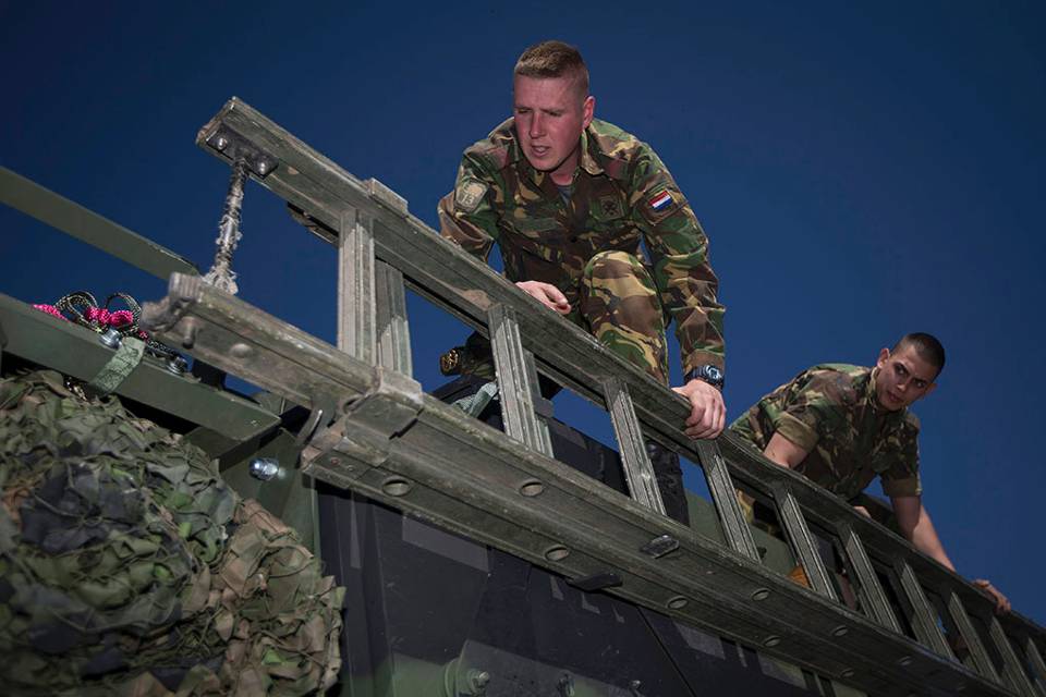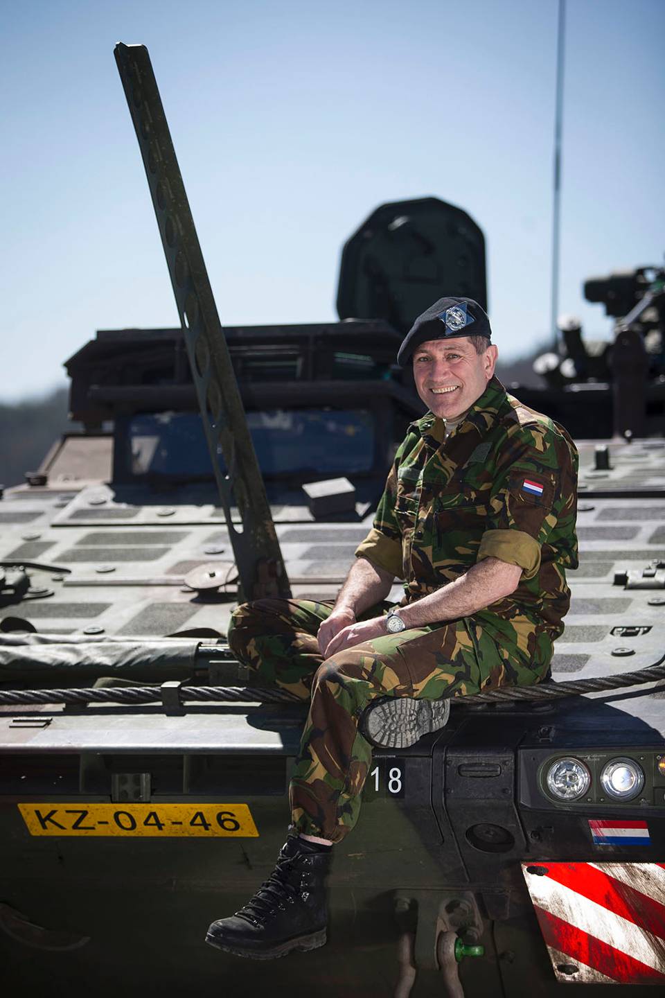 “Dit is de laatste versie van de 5 varianten die wij invoeren”, vertelt luitenant-kolonel Herman van den Tempel, Hoofd Omscholing & Invoer Boxer, wijzend op de genieversie van de indrukwekkende verschijning. Hij is al 7 jaar betrokken bij het project en kent het klappen van de zweep bij DMO. “De problemen die hier naar boven komen, gaan via DMO door naar Rhein Metall, de producent met wie wij zaken doen. Ik kan me helemaal voorstellen dat de mannen die de Boxer nu in gebruik hebben, ermee weglopen. Het is aan mijn team om in de euforie rond de overgang van YPR naar Boxer te ontdekken waar het nog beter kan.”
