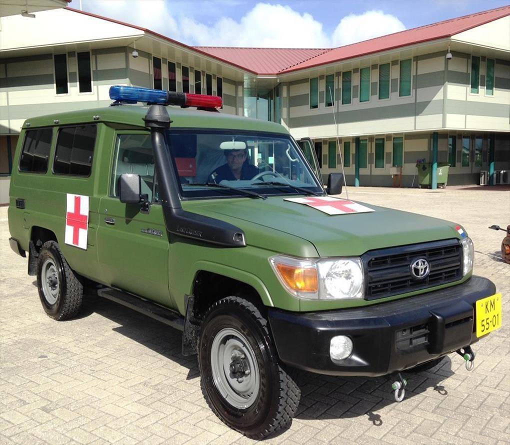 ziekenauto’s overgedragen aan de Commandant der Zeemacht in het Caribische