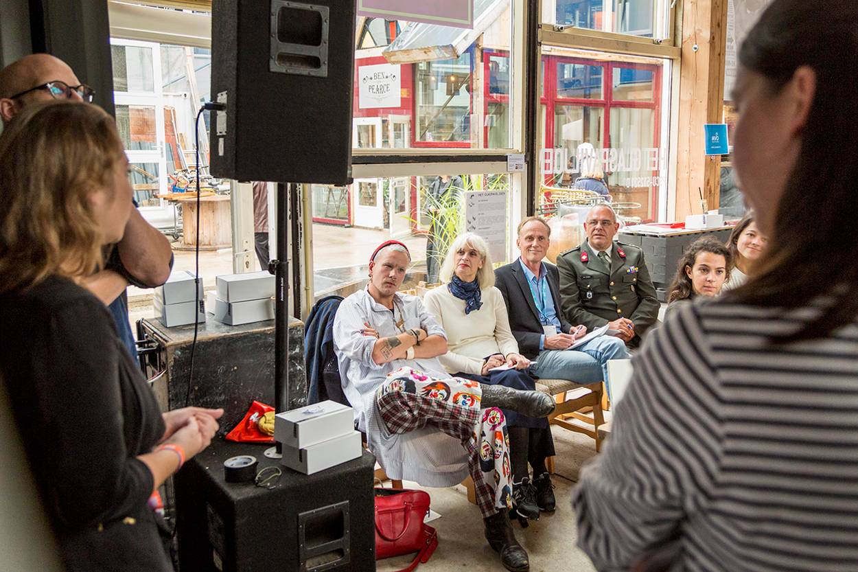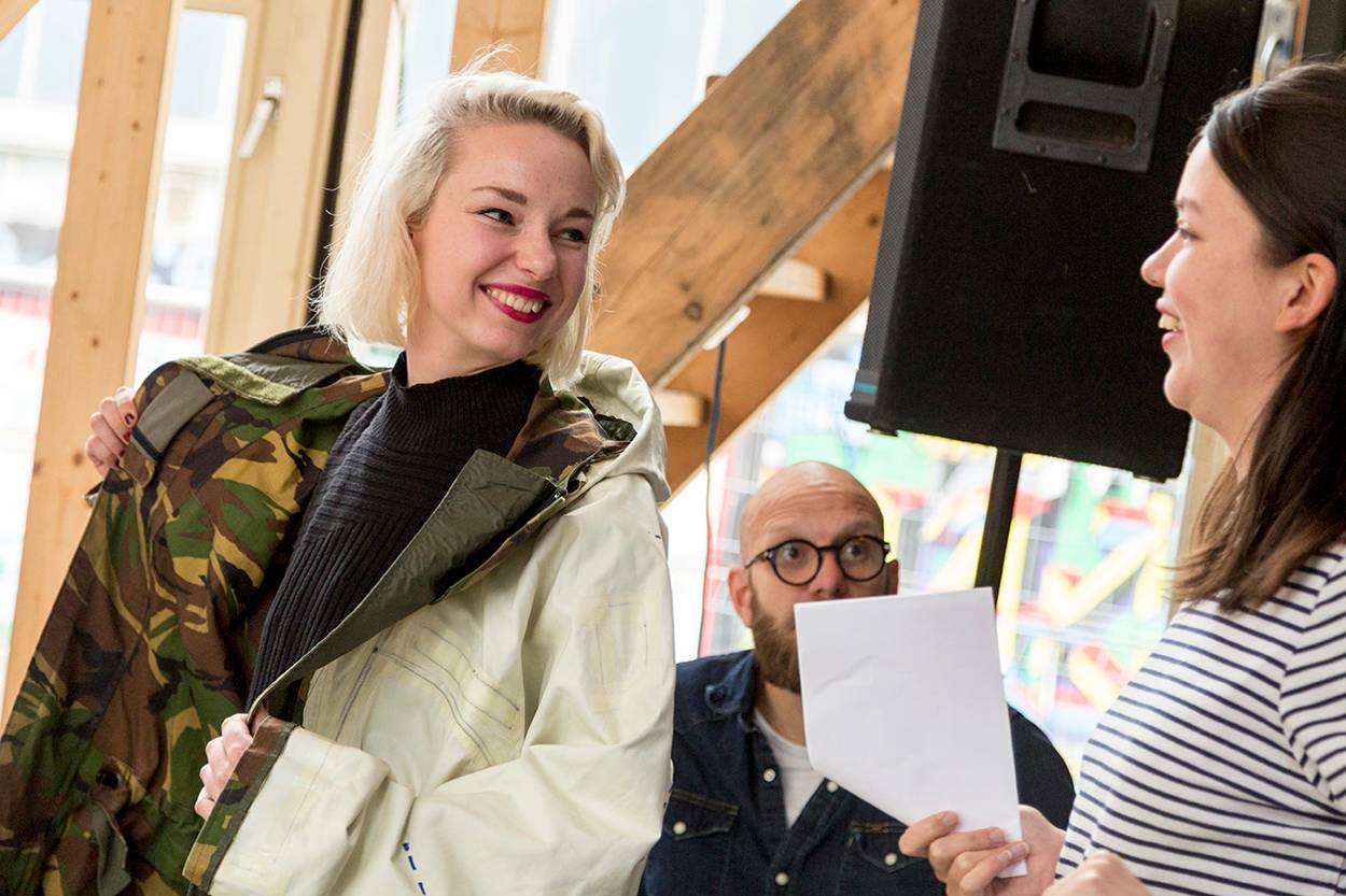 Het Team Nat Weer (foto onder) poneerde het idee om oude legerjassen in oorspronkelijke vorm te hergebruiken: "Keer ze binnenstebuiten en je hebt een prachtige regenjas. De voering is wit en kan als blank canvas dienen voor logo’s en teksten. Met lasertechniek kun je bovendien designs, logo’s of vervaging aanbrengen op de originele legerprint."