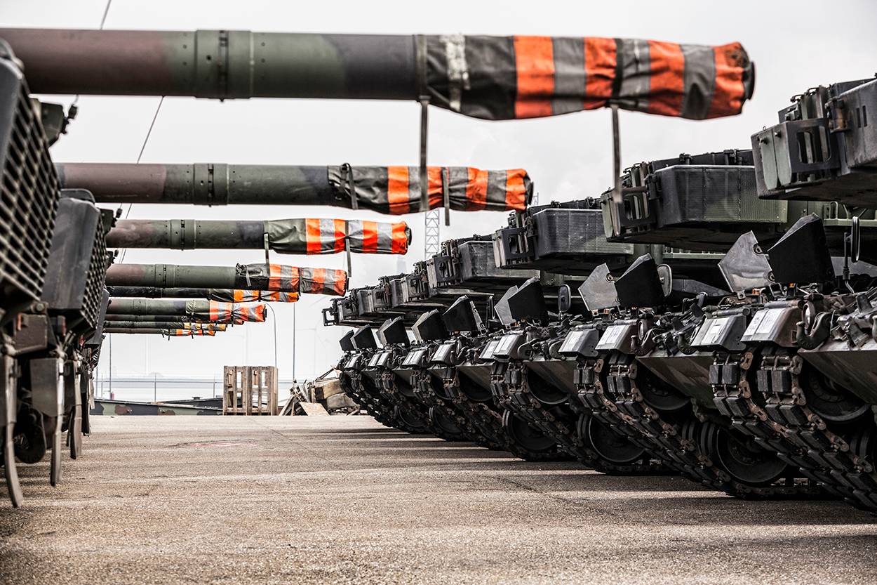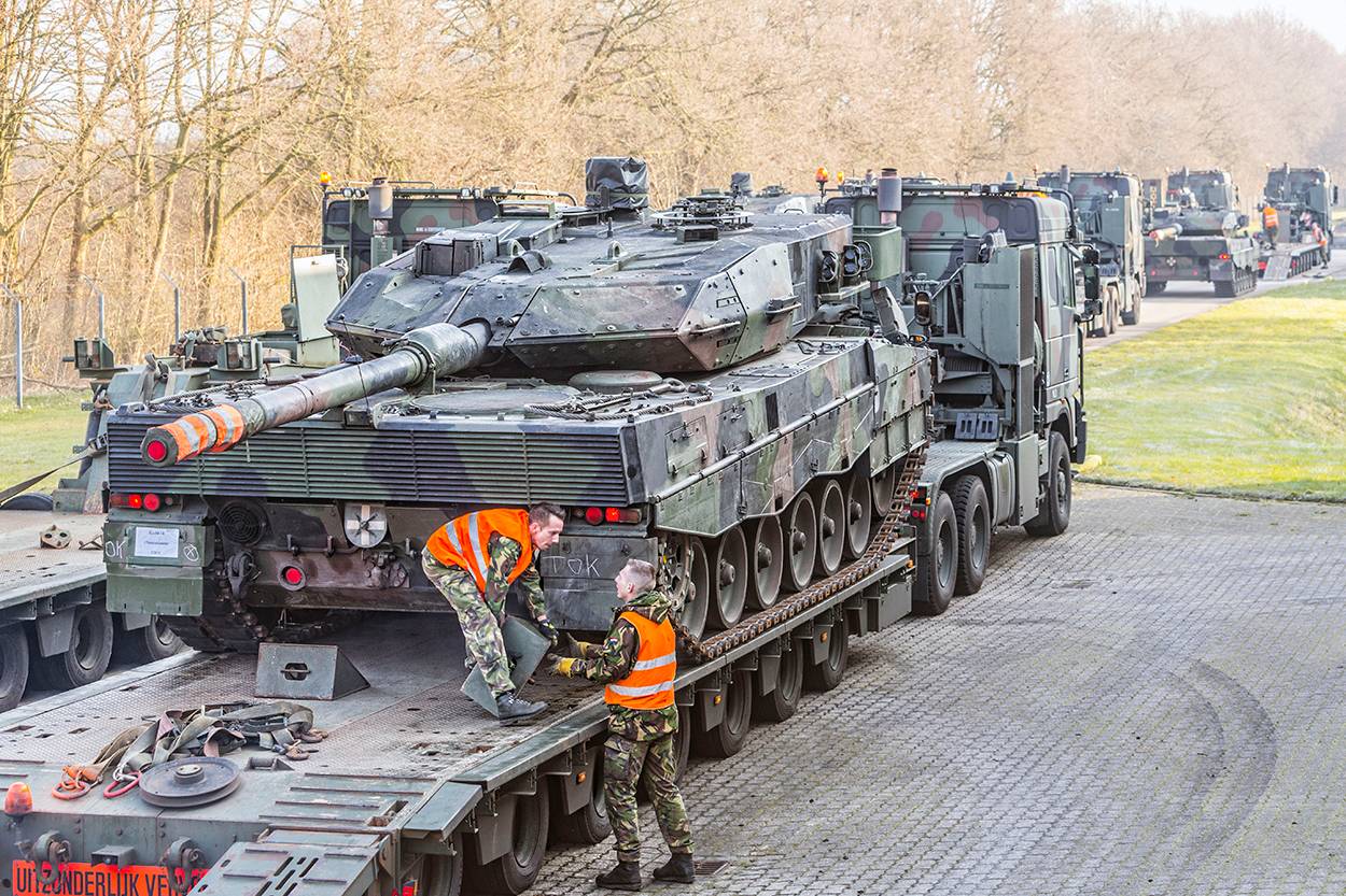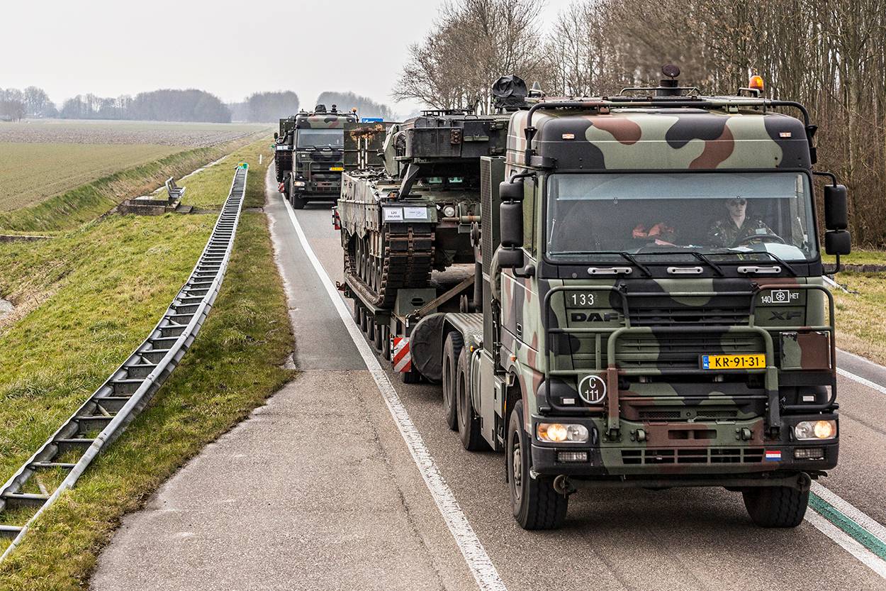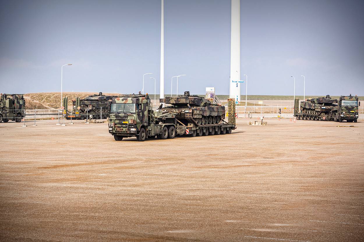 Het was een prachtig gezicht daar in de toch wat verlaten Eemshaven in Noord-Groningen: 20 Leopardtanks bij elkaar voordat ze het vrachtschip Finnsea oprijden. 60 staan er nog in de opslag in Almelo en Oudemolen nabij Assen. In die Drentse plaats brengen Defensiemedewerkers de voormalige tanks van de cavalerie in operationele staat voor de verkoop.