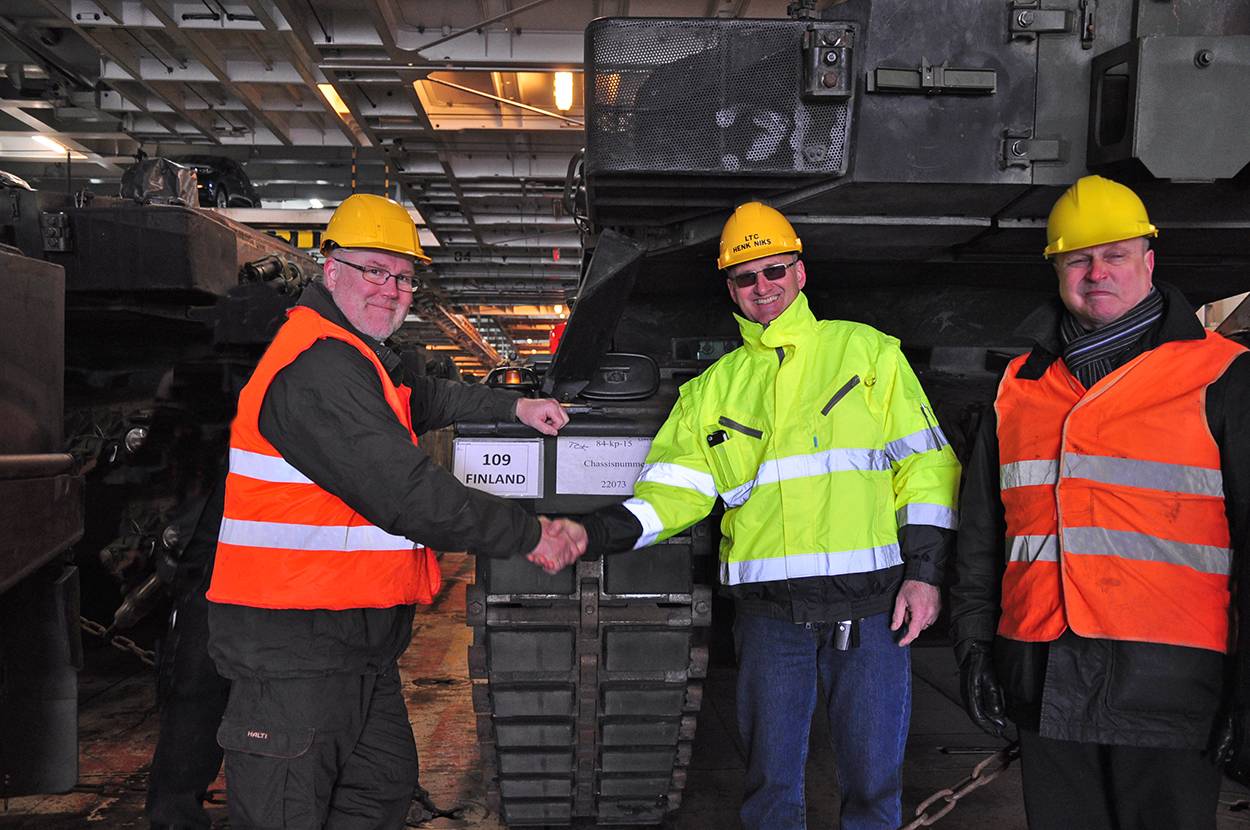 Geen tank echter die ons land verlaat voordat een grondige inspectie plaats heeft gehad. Daarvoor kwamen in februari 7 specialisten van de Finse krijgsmacht naar ons land voor de controle van de pantsers en de bijbehorende uitrustingspakketten en boordwapens. “Alles was piekfijn in orde”, weet luitenant-kolonel Henk Niks (DMO). “De verhoudingen onderling zijn supergoed. De aanwezigheid van hun Inspecteur der Infanterie, kolonel Jukka Valkeajärvi, geeft al aan dat Finland er groot belang aan gehecht.”