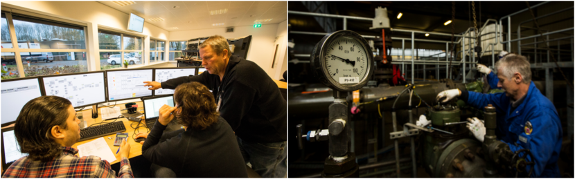 Medewerkers monitoren de druk in de pijpleidingen en zetten op afstand de afsluiters open en dicht. Monteurs onderhouden het materieel en verhelpen verstoringen.