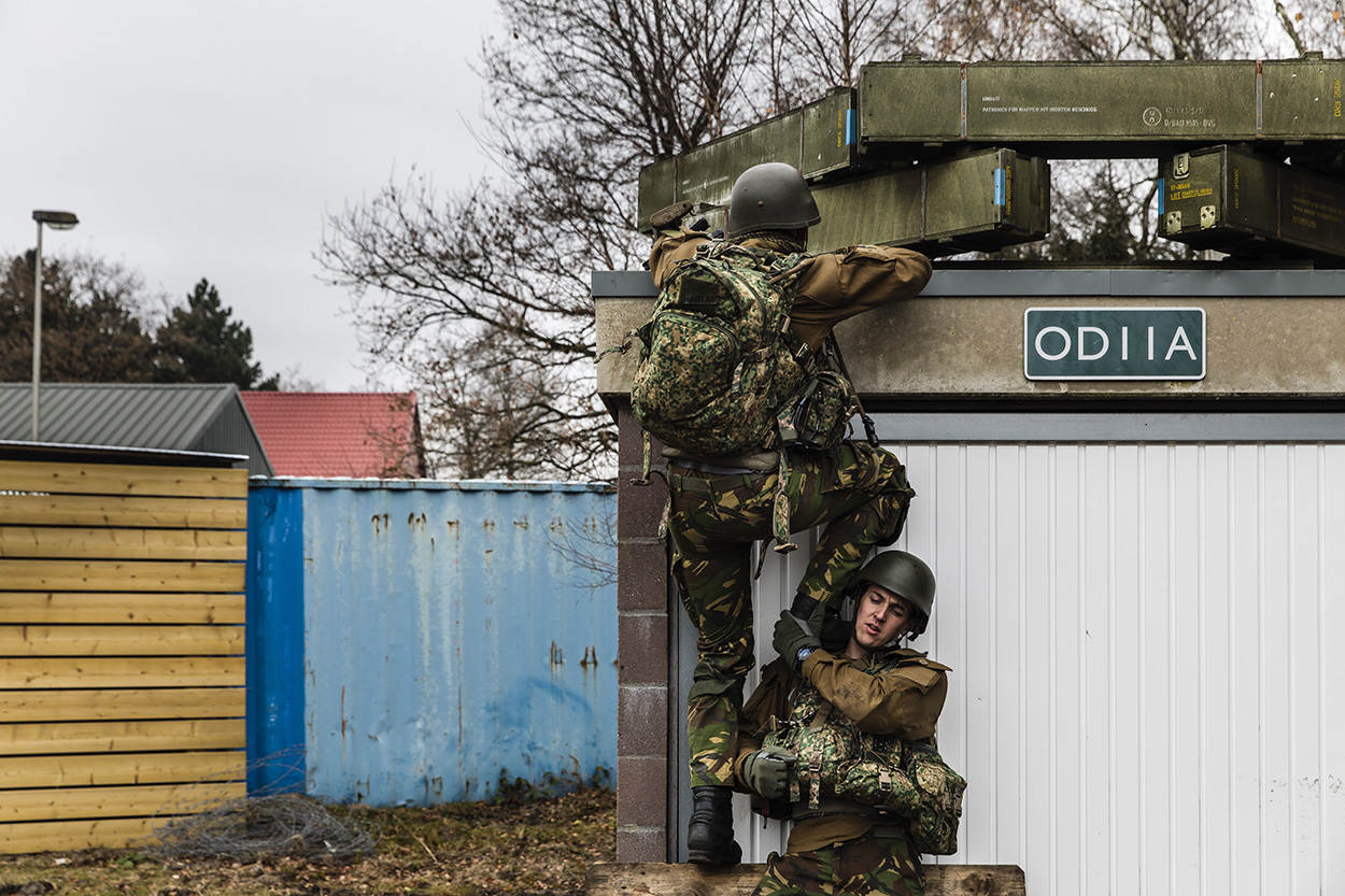 De laatste restjes wintermist kleven aan de vlekkenpakken. Militairen van 42 Bataljon Limburgse Jagers uit Oirschot tijgeren over de bevroren grond van oefenterrein De Vlasakkers. De kleinkaliberwapens verscheuren de stilte en het lijkt niet meer dan een gewone oefening.