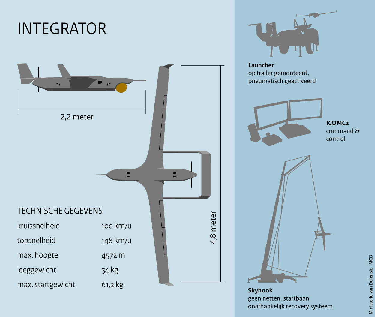 De Defensie Materieel Organisatie en fabrikant Boeing-Insitu hebben een contract ondertekend voor de levering van 3 Integrator-systemen. De onbemande vliegtuigen vervangen de ScanEagle, die op zijn beurt weer de interim oplossing was voor de Sperwer.