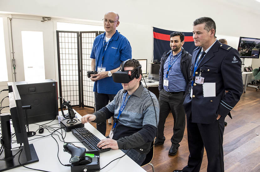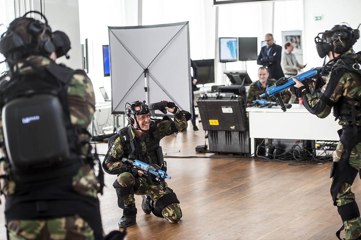 De vijand uitschakelen in een lege hal. Op zo’n 15 meter hoogte je toch onder de waterspiegel wanen of een fregat besturen vanuit een luie stoel. Het kon allemaal tijdens het tweede Defensie Simulatiesymposium dat dit keer in Den Helder werd gehouden. “De vermenging van de echte en de virtuele wereld is niet meer te stoppen. Het gaat steeds verder”, denkt plaatsvervangend commandant Zeestrijdkrachten schout-bij-nacht Rob Kramer.
