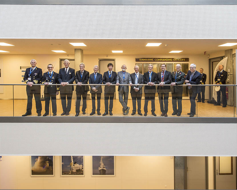 Een bijzonder moment was het bezoek van 12 gewezen commandanten van de maritieme software afdeling (foto boven). De afdeling leeft voort onder de naam Systemen Applicaties Trainers en Simulatoren (SATS).