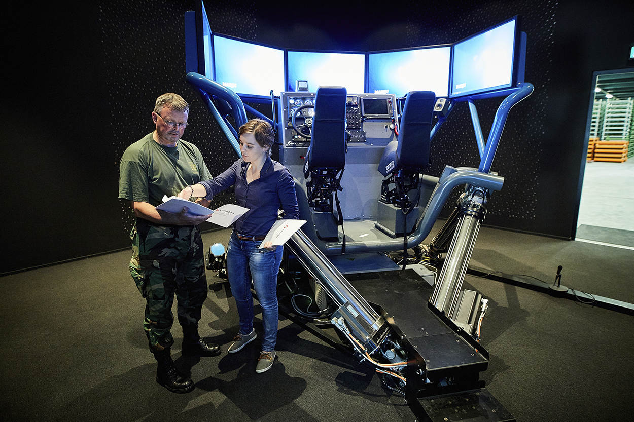 “Er waren een paar spannende momenten bij het uitladen en verplaatsen naar de ruimte, waarbij de simulator door zijn hoge zwaartepunt dreigde te kantelen. Maar gelukkig ging alles goed”, meldt projectleider namens DMO Karin van Bodegraven. “Nu kunnen we beginnen met de validatie. Hierbij onderzoeken we in hoeverre de simulator voldoet aan de eisen en wensen van Defensie voor opleiding en training.”
