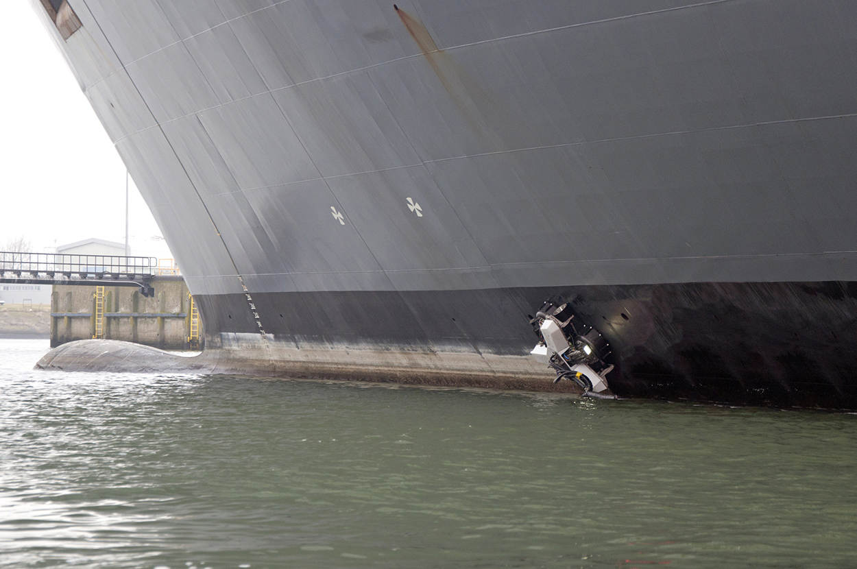 Een oplossing is mogelijk al voor handen met de op afstand bestuurbare robot van Fleet Cleaner. Onlangs verwijderde het apparaat bijna alle aangroei op Zr.Ms. Karel Doorman in de haven van Den Helder. Wordt na de zomer vervolgd met verdere testen bij de Directie Materiele Instandhouding van de marine.