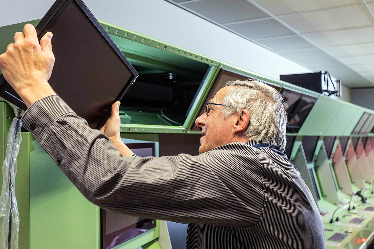 “De nieuwe Guardion Submarine Trainer (GST) simuleert de stuurboordzijde van de commandocentrale van een Walrusklasse”, legt Van der Velden uit. “De simulator heeft een zo goed mogelijke look & feel. Alle sensoren en subsystemen zijn gesimuleerd, zoals onder andere sonarsystemen, de nieuwe optronische mast en het torpedowapensysteem. Er is aandacht besteed aan de kleinste details. Daarbij hebben we soms wel moeten improviseren. Voorbeeld: een aantal knoppen bleek niet meer leverbaar. Die hebben we uiteindelijk met een 3D-printer laten namaken bij DMI.”