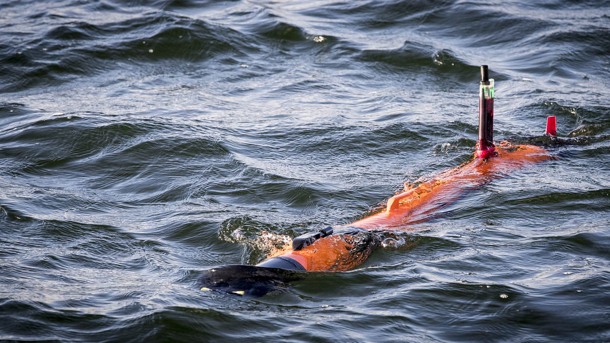 De LAUV onderwaterdrone, of –robot, ziet er uit als een torpedo en kan zelfstandig speuren naar mijnen.