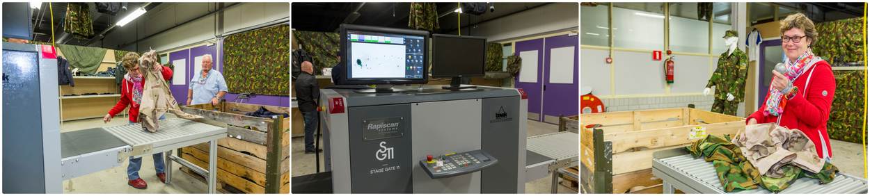 Op het eerste gezicht lijkt het een gewone handbagagescanner zoals we die kennen van luchthavens en rechtbanken. Ze zijn geprogrammeerd om ‘verboden spullen’ te traceren. Het door DMO gekochte apparaat is feitelijk dezelfde, maar dan ‘ingespoeld’ met alle, door Defensie aangemerkte ongewenste artikelen die soms in kleding achterblijven. Geen spullen die per definitie veel waard zijn. Maar je wilt wel voorkomen dat ze in verkeerde handen terecht komen of dat medewerkers van de Biga Groep zich eraan bezeren. Zij controleren alle zakken. Het röntgenapparaat herkent bijvoorbeeld zakmessen, pistoolmagazijnen, munitiepatronen. Maar ook autosleutels, toegangspassen en portemonnees.