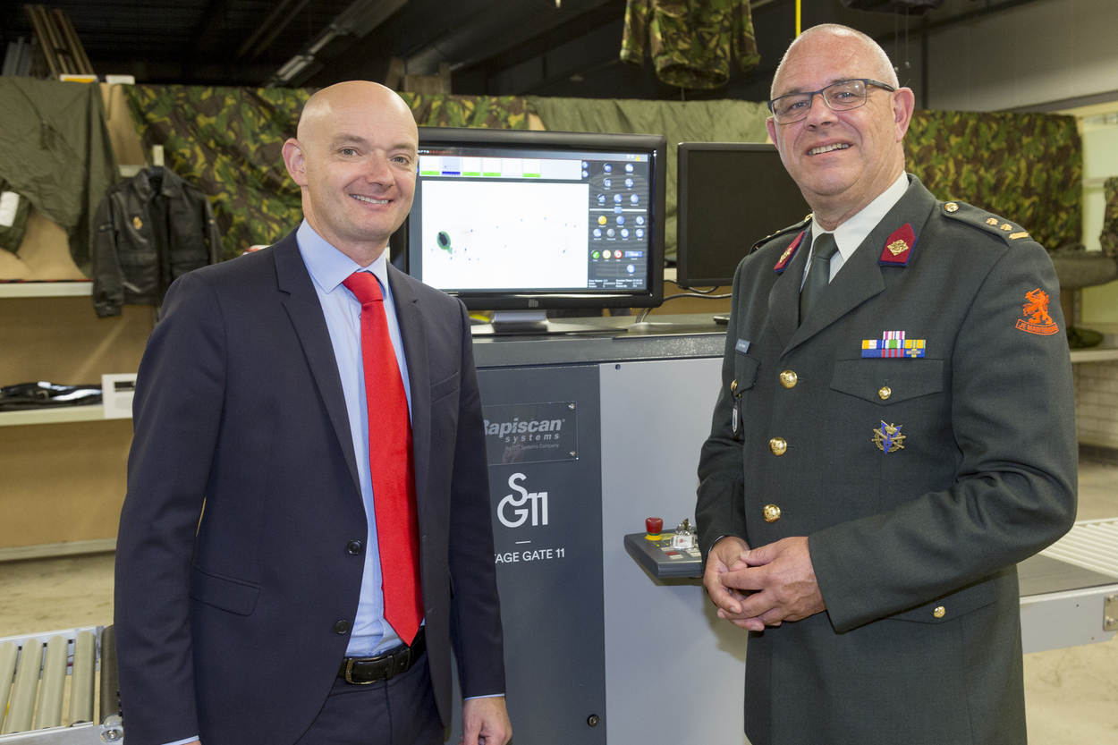 Leverancier Michiel Poppink van Stage Gate 11 en categoriemanager luitenant-kolonel Rob van Arnhem van het KPU-bedrijf.