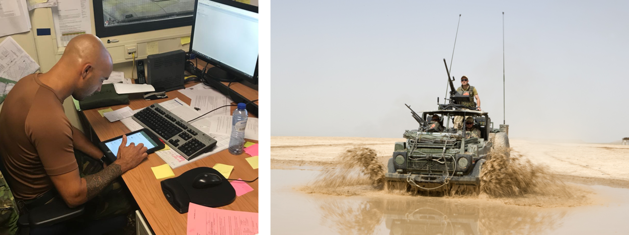 Projectleider ir. Juriën Verweijen van Kennis, Innovatie, Experimenten en Simulatie (KIXS) van het Joint IV Commando: “Een chauffeur moet na een rit altijd een voertuigcheck uitvoeren en de 300 punten tellende roze lijst invullen. Alles moet kloppen, variërend van banden tot en met oliepeil. Aan de hand van de lijst controleert een groepscommandant in welke technische staat voertuigen verkeren en of ze inzetbaar zijn voor een missie of oefening. Uiteindelijk komt de checklist terecht bij de Onderhouds-, Diagnose- en Bergingsgroep (ODB) van het peloton. Die beoordeelt de actiepunten en voert zo nodig reparaties uit.”