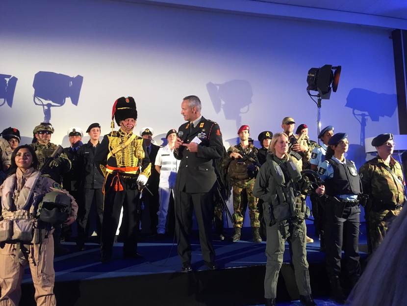 Kolonel Harold Jacobs, commandant van het KPU-bedrijf, samen met andere deelnemers van Defensie aan de Sustainable Fashion Week.