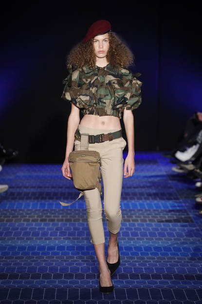 Het is maar een weetje, maar in de modebranche is 'circulaire' mode - gemaakt van oude kleding - een gevleugelde term. Zo kon het gebeuren dat mannequins tijdens de Sustainable Week van oude defensiekleding gemaakte ‘haute couture’ showden. Modeontwerper Mo Benchellal presenteerde zelfs een heuse collectie. Maar Defensie deed meer. Zo showde ‘het leger’ op de catwalk een grote variëteit aan kleding en uitrusting (foto). Dat moest de brede inzetbaarheid ervan symboliseren. Foto: Team Peter Stigter.