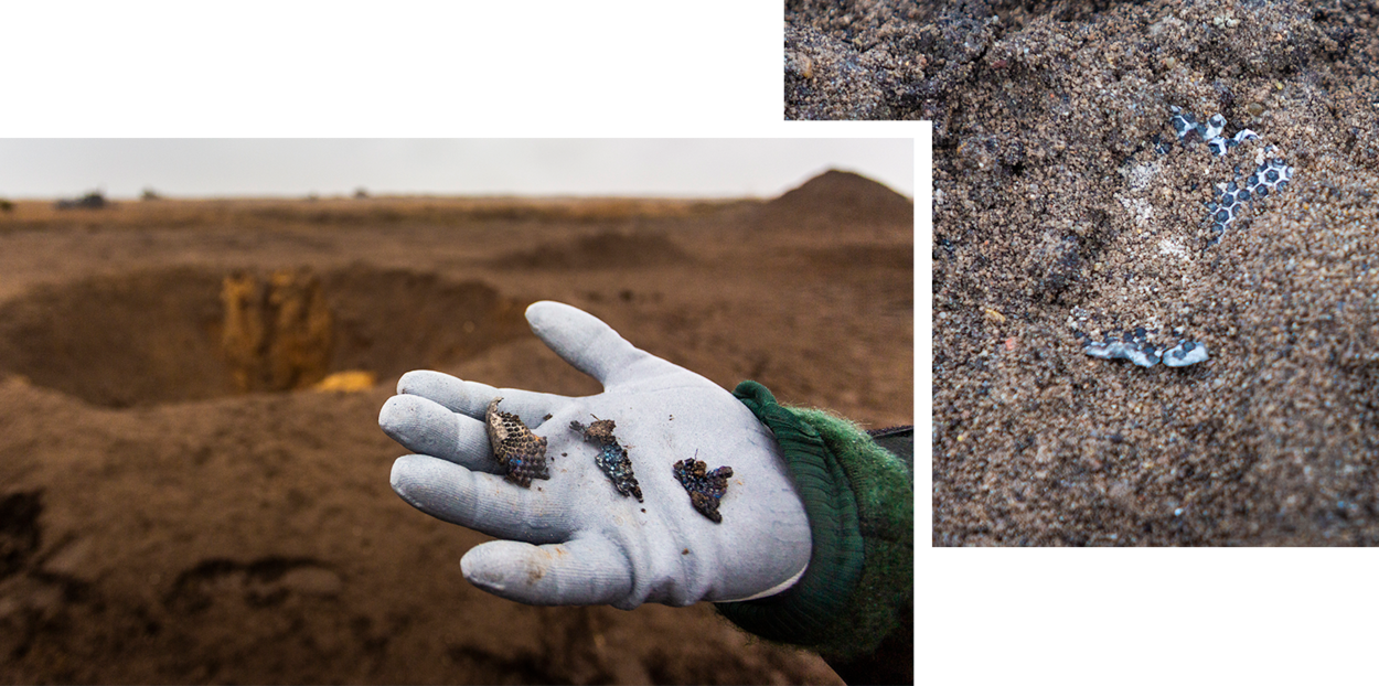 Vervolgens gaan de explosieven onder een flinke laag zand.