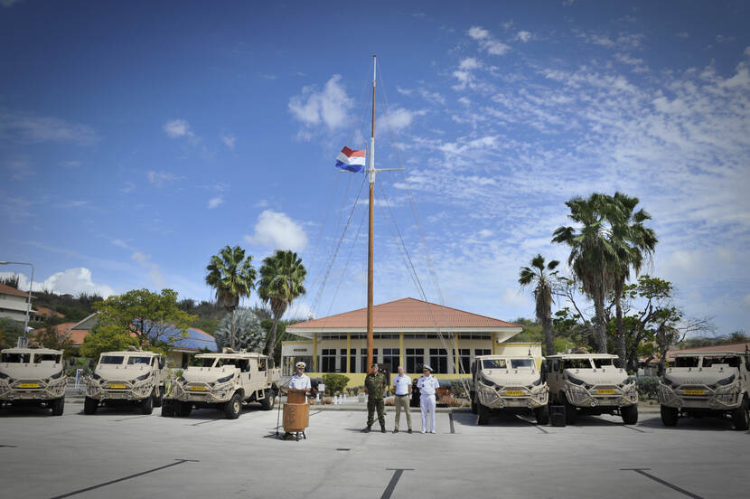 Defensie in het Caribisch gebied heeft Anaconda’s begin deze maand in gebruik genomen. 35 werden nu geleverd, er volgen in ieder geval nog 11. De nieuwe terreinwagens vervangen gepantserde Mercedes-Benz (MB280). Brigadegeneraal der Mariniers en Commandant Zeemacht Caribisch Gebied Peter-Jan de Vin nam het wagenpark in ontvangst. “Een belangrijk moment, na jaren van bezuiniging”, memoreerde De Vin.