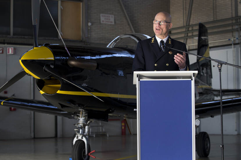 Het modificatieproject van de Pilates PC-7 lesvliegtuig is afgesloten. Directeur Projecten DMO, commandeur Dick Kreiter (foto) en plaatsvervangend Commandant Luchtstrijdkrachten generaal-majoor Mario Verbeek luidden het feestelijke moment in.