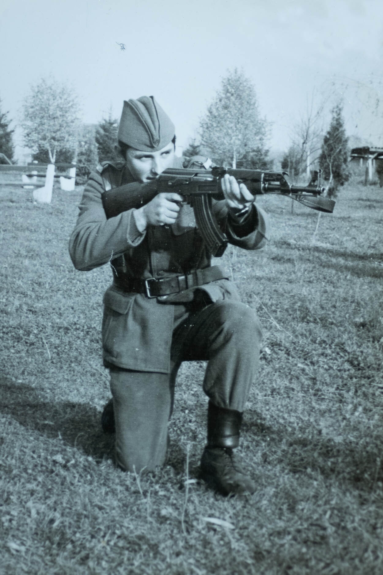 Aldo in het uniform van het Joegoslavische Volksleger schietend met een 7.62 mm x 39 M70 geweer. Oktober 1981, eerste jaar op de Militaire Technische Universiteit van Zagreb.
