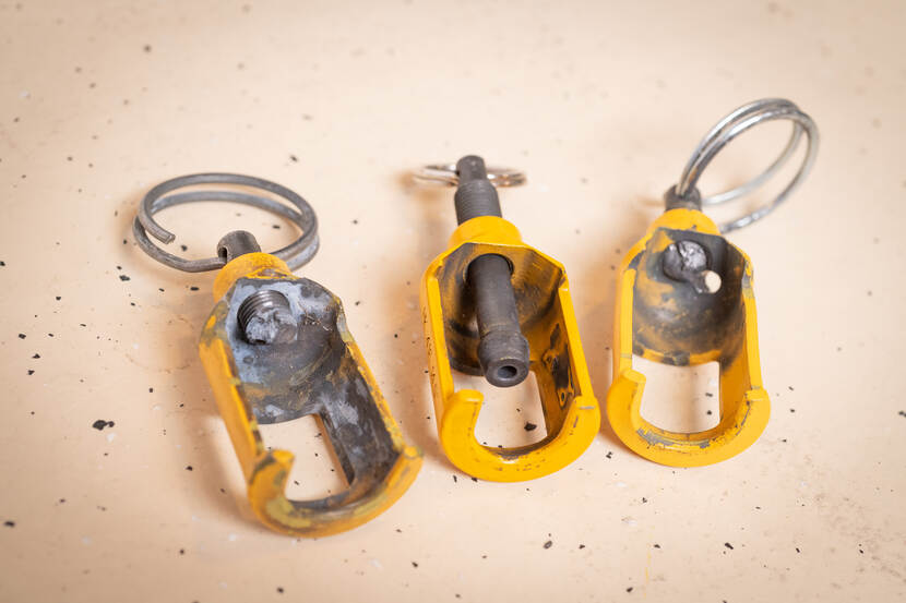Verzameling abusievelijk geplaatste mondingsdoppen die de inslag van een scherpe 5.56 mm patroon niet hebben overleefd.