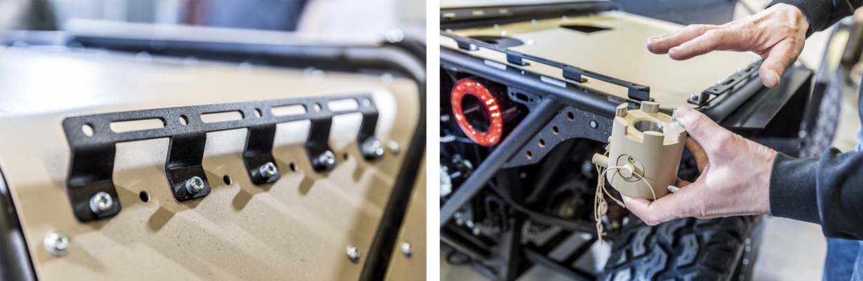 Het KCT test het voertuig deze zomer, maar eerst moet de quad gebruiksproof worden gemaakt. Afwerking van de nog kale plekken aan de ene kant. Ook het KCT komt met wensen, blijkt tijdens de rondgang. Zoals vliegtuigrails, op de achterkant van de quad. Zodat militairen hun goederen op meerdere plekken kunnen vastzetten.