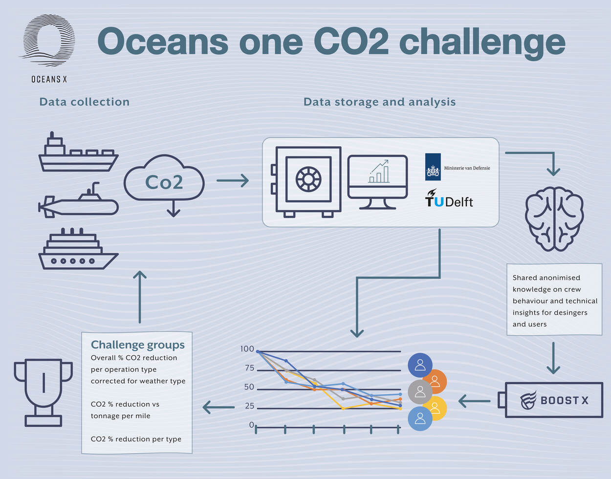 Oceans 1 is het eerste initiatief van Oceans X. Een stichting met allerlei projecten die met name de maritieme sector moeten verduurzamen. De Koninklijke Marine neemt deel aan Oceans 1 met 5 schepen. 2 Oceangoing Patrol Vessels, Zr.Ms. Zeeland en Zr.Ms. Groningen; 2 onderzeeboten Zr.Ms. Zeeleeuw en Zr.Ms. Dolfijn en het ondersteuningsschip Zr.Ms. Pelikaan. Daarnaast doen 2 politieschepen en een Deense ferryboot mee aan de challenge. De deelname van de Deense marine met 1 van hun schepen is zo goed als zeker. Meer informatie over Oceans X en Oceans 1 is te vinden op www.oceansx.nl.
