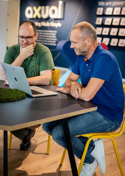 CEO Jeroen van Disseldorp (rechts) in overleg. Alles draait om data.