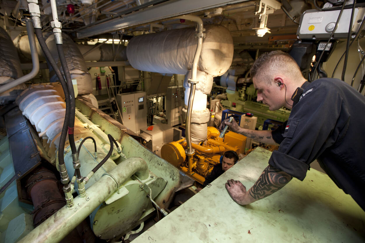 “Wat ons betreft wel. We hebben binnen Defensie een operationele energiestrategie, waarin is vastgelegd dat we onder andere milieubewuster willen varen. Dat gaat over alternatieve brandstoffen, maar ook over die gedragsverandering. Als je in de auto zit, ram je ook niet constant op het gaspedaal en word je geleerd om rustig op te trekken. Dat is op een schip net zo belangrijk. Vooropgesteld: we blijven de Koninklijke Marine en als de situatie daar om vraagt, moet die sportstand gewoon aan. Zuinig of niet. Dan is het gassen en dingen doen. Maar op al die momenten daartussen kunnen we best weleens andere, slimmere keuzes maken. Uiteindelijk beschermen we wat ons dierbaar is. Maar, wat is dat dan precies? Gaat dat ook niet om onze leefomgeving?”