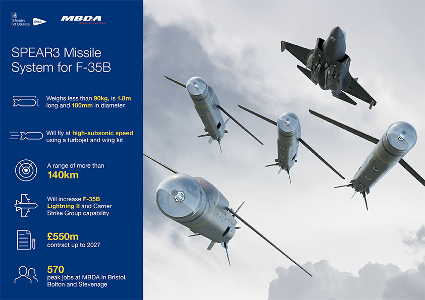 De Britse F-35B-gevechtsvliegtuigen worden voorzien van nieuwe raketten tegen gronddoelen. In het ambitieuze Defensieprogramma van het verenigd Koninkrijk is daarvoor £ 550 (€ 480 miljoen) vrijgemaakt.