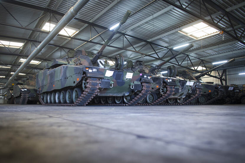 CV90’s in een loods. Door beperkte budgetten was bij de aankoop van het pantservoertuig niet de juiste aandacht voor obsolescence-management.