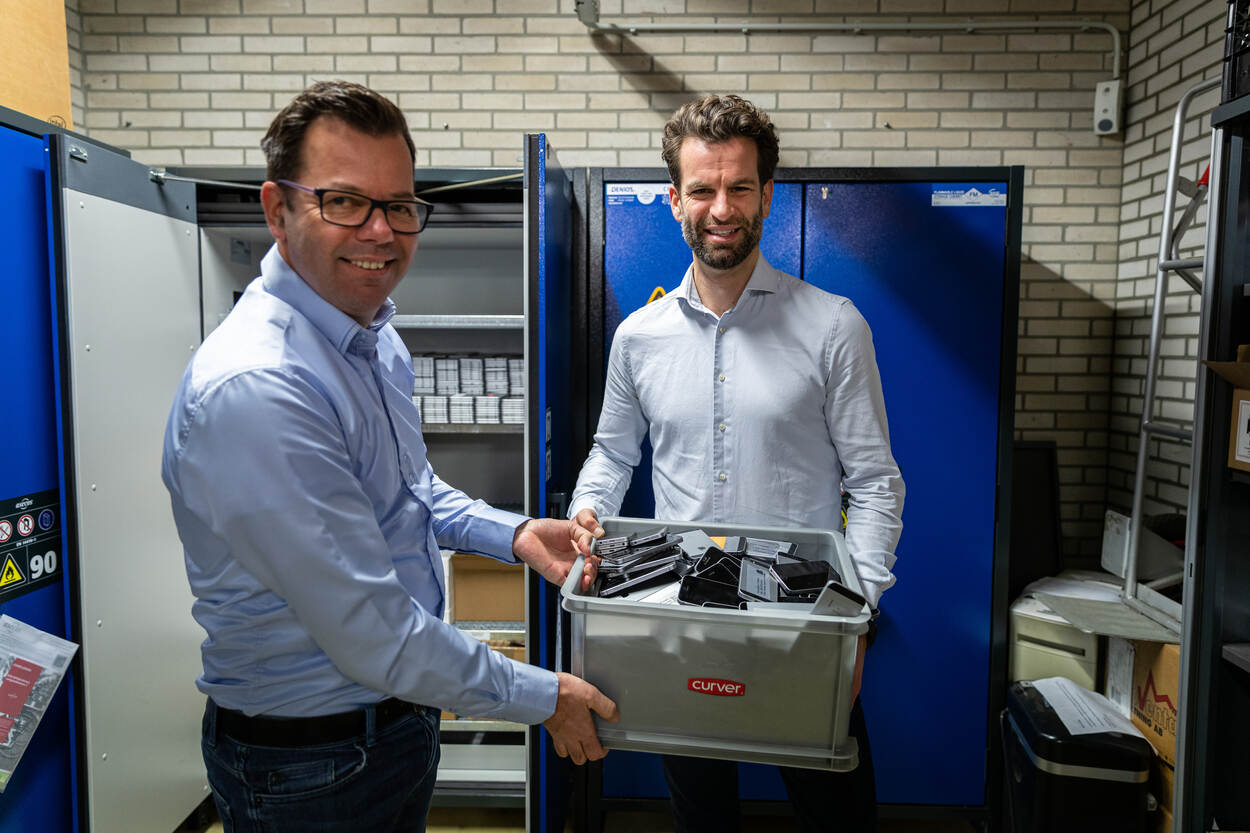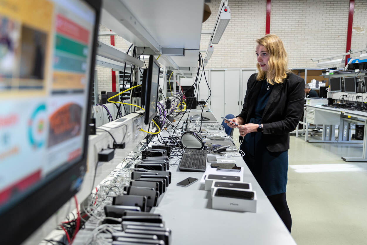 In de brandwerende kluizen liggen inmiddels zo’n 15.000 iPhones, van pakweg model 4 tot 10. “Bij de inkoop was destijds niet nagedacht over wat we er na afschrijving mee zouden doen”, zegt Elske. “Tot 2019 ging dat bij Defensie om ongeveer 10.000 toestellen, maar nu circuleren er zo’n 60.000. Dan heb je wel een uitdaging.”
