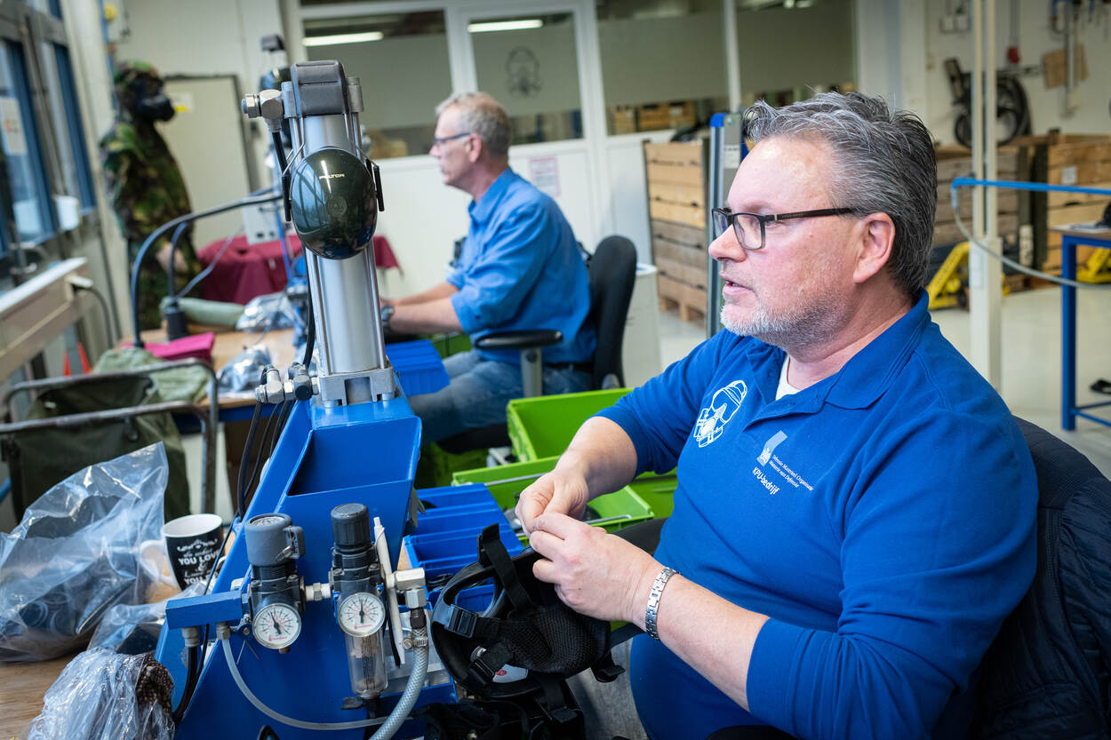 Militairen die uit dienst gaan moeten hun uitrusting inleveren. En soms gaat er iets kapot. Ook dat komt terug bij Defensie. Medewerkers van de BIGA-groep, die mensen met een afstand tot de arbeidsmarkt inzet, sorteren al die binnengekomen uitrusting waaronder gasmaskers. Het overgrote deel van die maskers is nog in goede staat. Die komen in grote kisten bij de veldmaskerwerkplaats terecht waar het werk van Bert en zijn collega Hans van Hunnik begint.