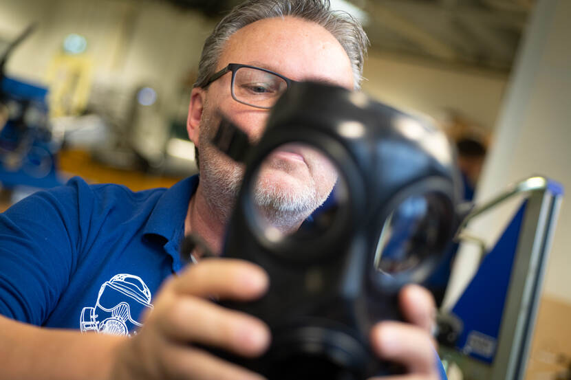Een refurbished telefoon kennen we allemaal. Maar een refurbished gasmasker? Bij het KPU-bedrijf in Soesterberg halen medewerkers in de ‘veldmaskerwerkplaats’ gebruikte maskers helemaal uit elkaar. Na een wasbeurt en nieuwe onderdelen kan het masker naar een nieuwe gebruiker. Per jaar zijn dat zo’n 8000 hergebruikte maskers. Nieuwe exemplaren kopen is dus niet nodig.