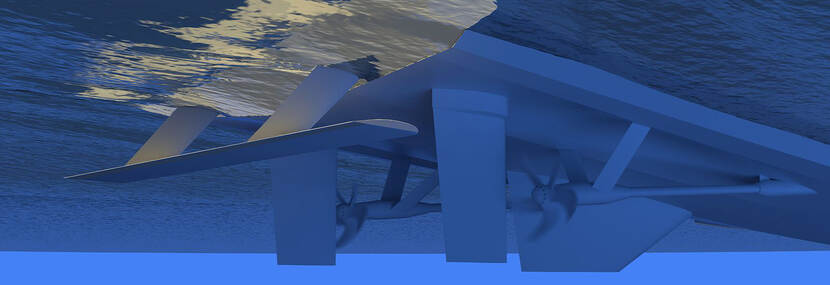 De Hull Vane wordt bevestigd onder het schip en werkt als een surfplank: het heeft profijt van een opgaande waterstroom.