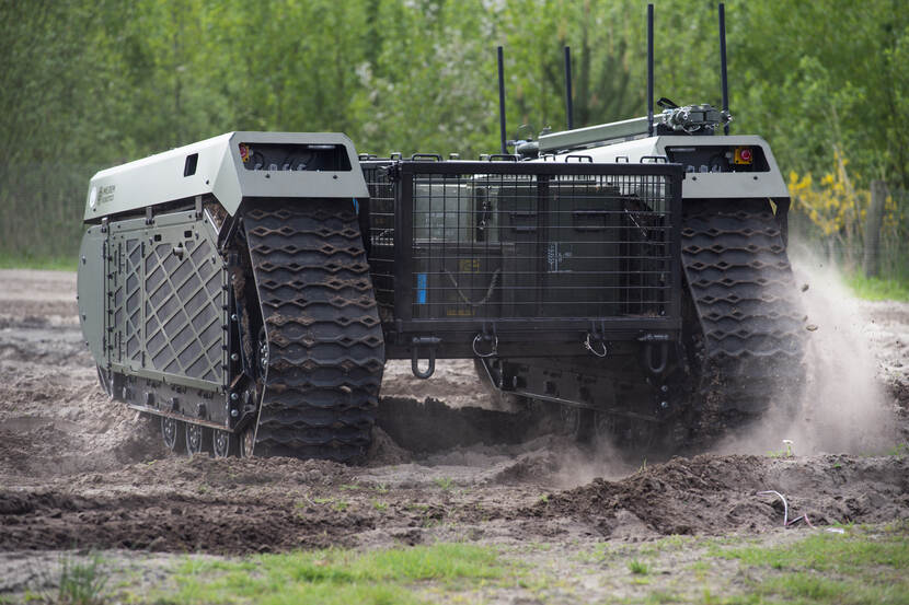 In de eerste fase van het programma wordt een lijst opgesteld van missies voor de onbemande grondsystemen. De THeMIS is al in gebruik in 12 landen (waaronder Nederland, red.). Het voertuig is geschikt is voor meerdere missies en is bedoeld om uitgestegen troepen te ondersteunen. De ‘robot’ kan dienen als een transportmiddel voor uitrusting of als bescherming van de troepen. (foto: MCD/Hans Roggen)
