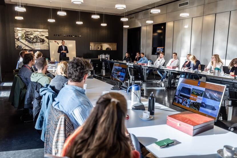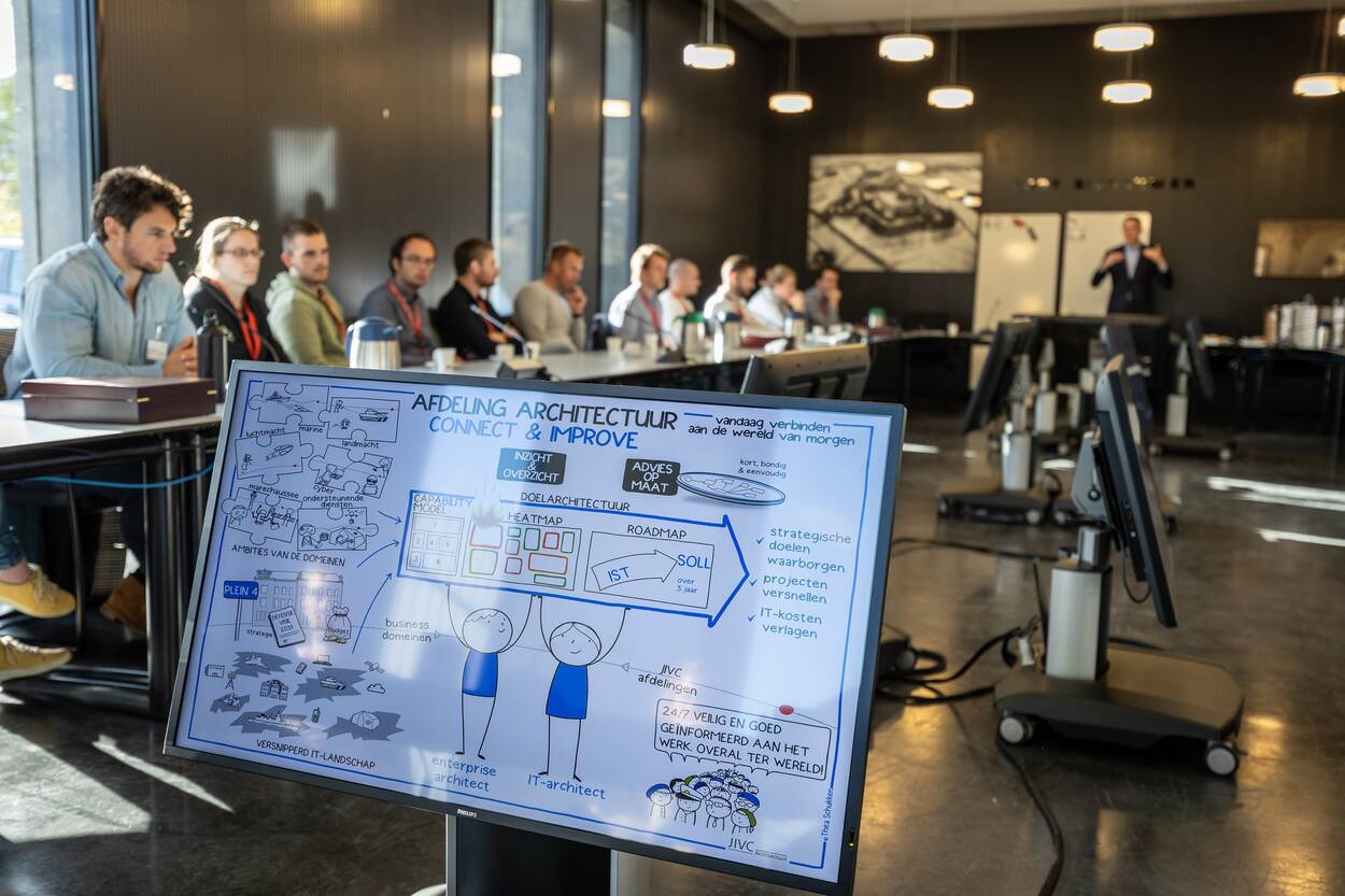 Het dagvullende programma bij DMO bestond uit onderwerpen waarmee de Defensie Materieel Organisatie zich dagelijks bezighoudt. Zo gaf hoofd Afdeling Architectuur Daan van de Watering een introductie over het IT-bedrijf JIVC en hoofd Bureau Life Cycle Modeling Dr. Ir. Bart van Oers sprak over hoe de aanbesteding van een marineschip in zijn werk gaat. Kopen van de plank versus zelf ontwikkelen werd uitgediept door hoofd Sectie Inkoopadvies Mariette Schijen. Zij hield volgens Marjolein een interessant en breed verhaal, waarin ook aspecten als juridische zaken en financiën goed tot uiting kwamen. Al met al kregen de cursisten een afwisselen palet aan onderwerpen voorgeschoteld. Marjolein: “Dit is een interactieve groep. De cursisten stellen veel vragen en dat is precies waarvoor we hier zijn.”