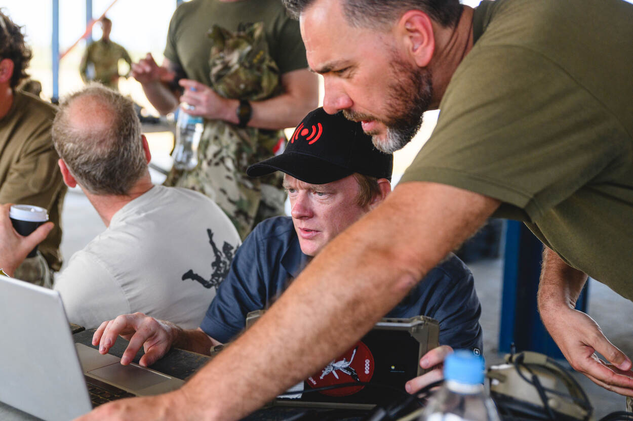 Het oefenteam bestond uit een bond gezelschap van verschillende defensie-afdelingen en afgevaardigden van dronefabrikanten.