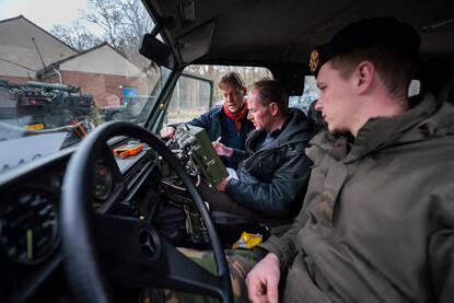 Luitenant-kolonel Ronald van JIVC/Landgebonden IT treedt op als intermediair tussen de eenheden en Landgebonden IT voor het leveren van de voertuigen en randvoorwaarden voor de uitvoering van de veldtest.