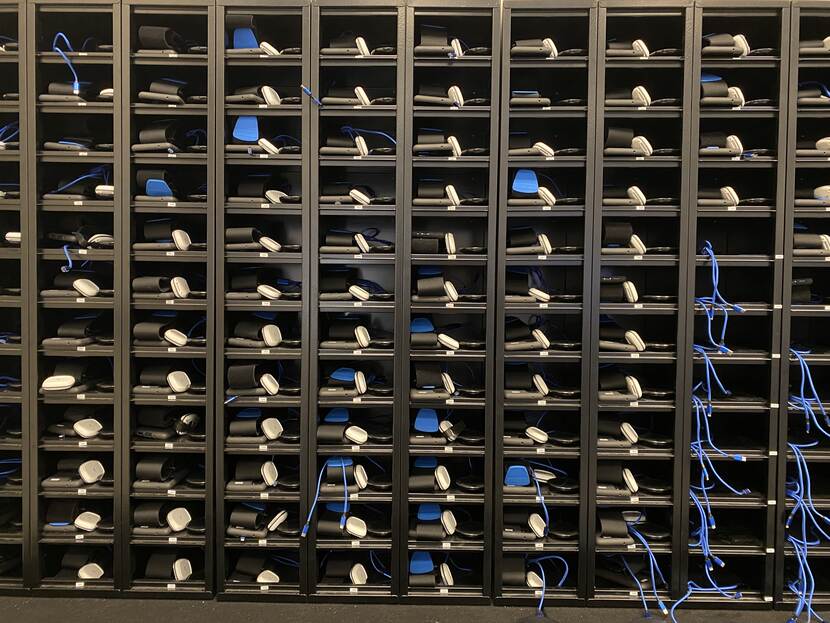Op een enorm touchscreen kan de oefenleider het gehele trainingscentrum overzien.