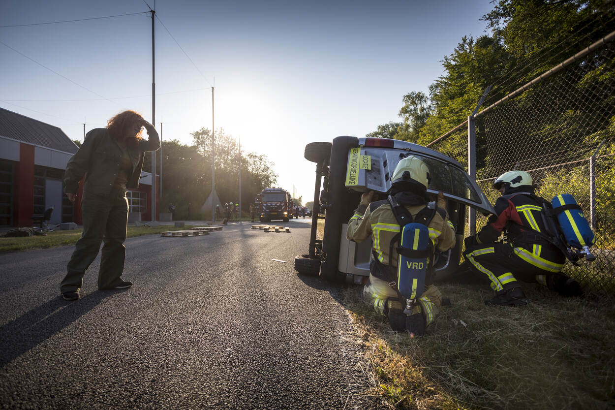 Wel doet de plaatselijke brandweer mee om de samenwerking met de bedrijfsbrandweer van het DMunB en de communicatie weer eens te testen. Het is ook wel weer eens tijd, vindt brandweercommandant Roelof. “Door de pandemie hebben we lang niet kunnen oefenen. Normaal gesproken doen we dat minimaal één keer per jaar met de omliggende vrijwilligerskorpsen.”