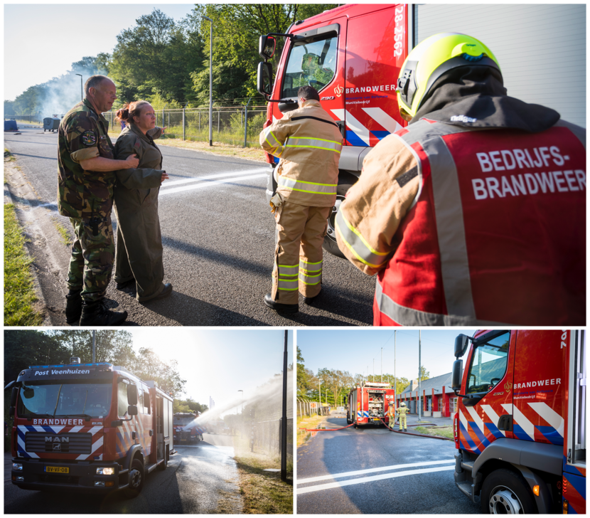 Marco kan vol aan de bak tijdens de oefening, net als alle andere vijftien brandweermensen van Defensie en de vrijwillige brandweer. “We kunnen nog wel wat nieuwe collega’s gebruiken”, schetst Herman. “Er zijn net drie ervaren krachten met pensioen gegaan en dat gat moeten we wel opvangen. En zeg eerlijk: wie wil zo’n mooie baan nou niet”?