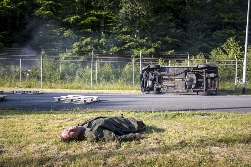 En die slachtoffers – van 2-rescue uit Eindhoven - zijn akelig echt. Sterker nog, twee van de acteurs missen daadwerkelijk ledematen. De militairen schrikken daar minder van dan de brandweerlieden uit Veenhuizen in de avond. Zij worden geconfronteerd met de explosie van een granaat, met als gevolg een aantal gewonden en brand in het bos. Aan de ontruiming van het dorp, zoals in Duitsland vorige week, komt het dan weer niet.