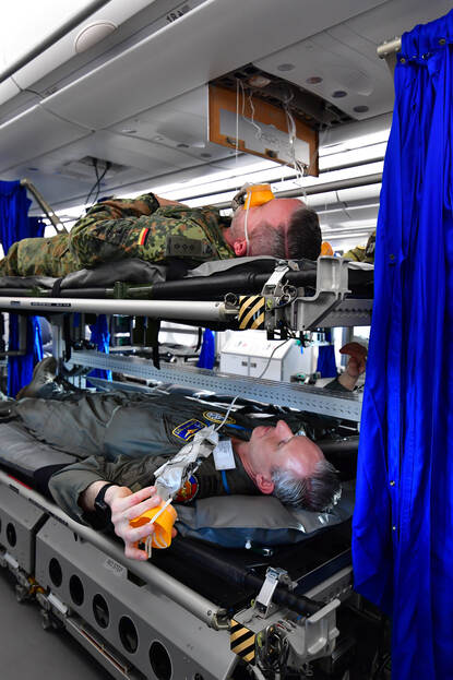 De zogenoemde head strike test aan boord van de A330 Medical Evacuation.