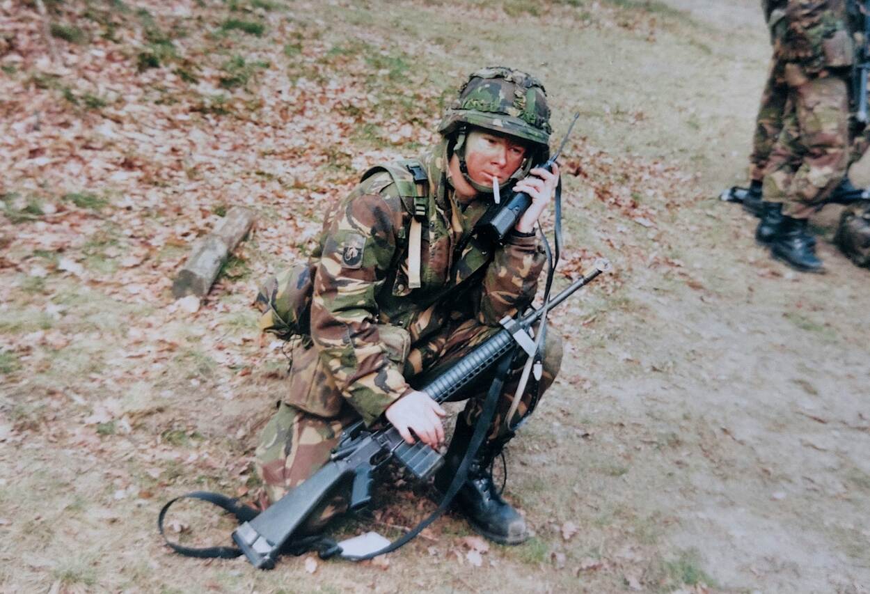 Rogier Vis tijdens zijn Algemene Militaire Opleiding met de nieuwe Diemaco.