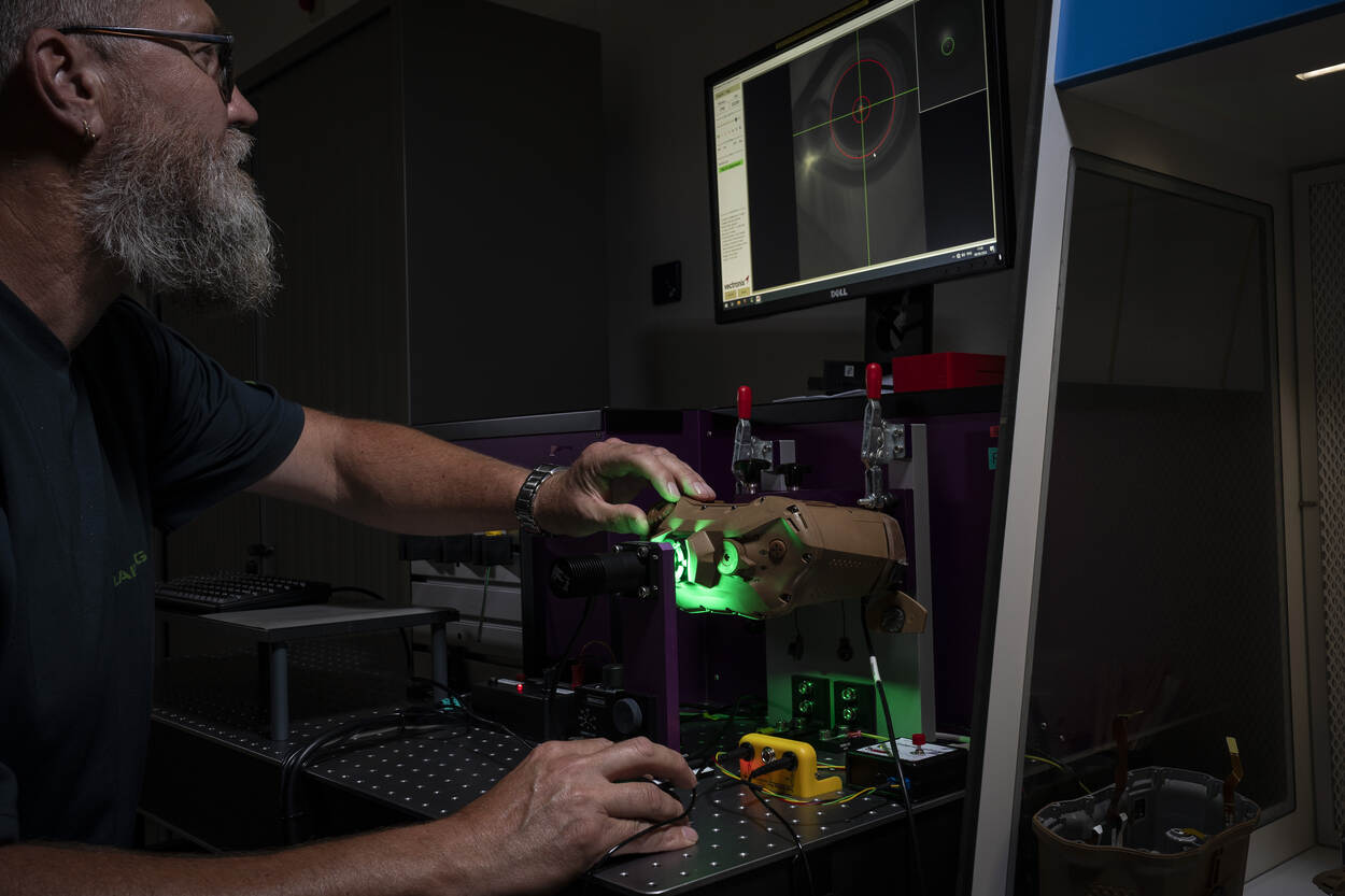 Jan-Pieter schuift ook samen met de engineers aan bij materieelprojecten van COMMIT zoals een nieuwe richtkijker voor de HK 417. Want heel veel van wat Defensie aankoopt aan optische middelen gaat eerst langs Den Helder. “De laboratoriumtesten van de richtkijker hebben we hier op de afdeling uitgevoerd. We volgden cursussen en ondersteunden bij andere beproevingen. Zo hebben we een paar dagen op de schietbaan gestaan met de gebruikers. Dat maakt het werk divers.”